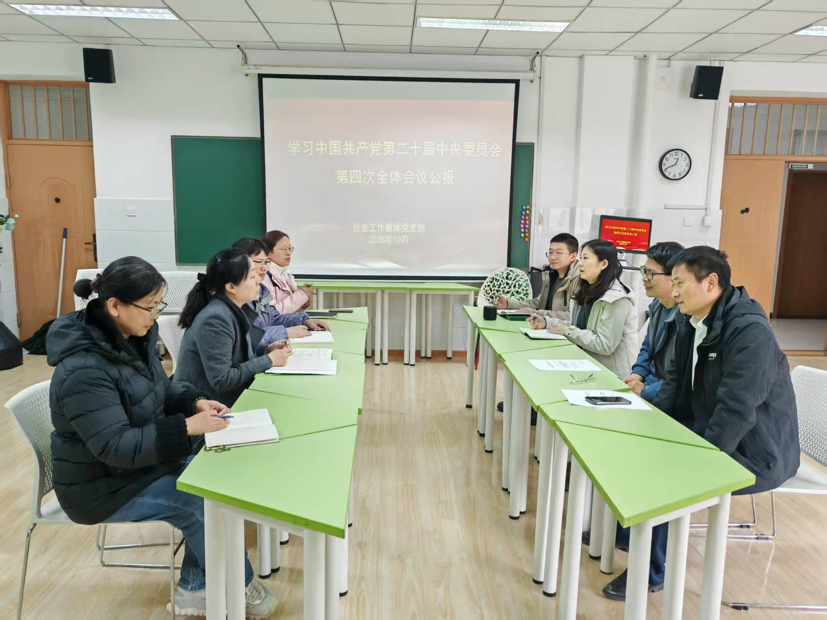 各党支部组织师生党员集体学习了《中国共产党第二十届中央委员会第四次全体会议公报》,深入学习领会党的二十届四中全会提出的新思想新论断新部署。师生党员一致认为,这次全会是在向第二个百年奋斗目标进军的新征程上举行的一次十分重要的会议。全会对“十五五”时期经济社会发展作出顶层设计和战略擘画,为全党全国各族人民把中国式现代化宏伟事业不断向前推进明确了方向和路径。