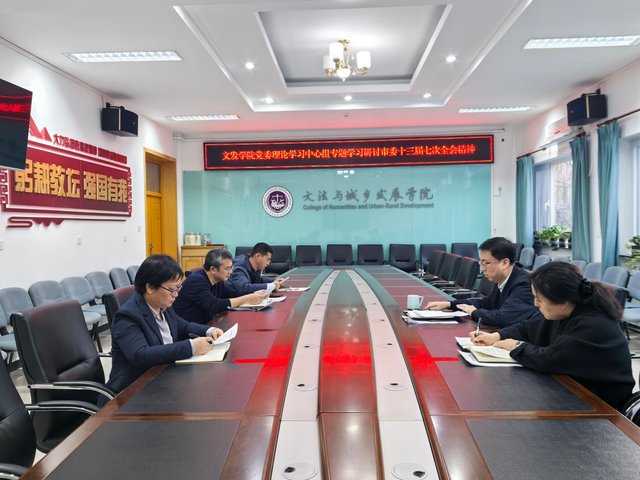11月24日,tyc522cc太阳党委理论学习中心组专题学习研讨中共北京市委十三届七次全会精神。中心组成员围绕全会部署与学院实际,集体研究贯彻落实举措。