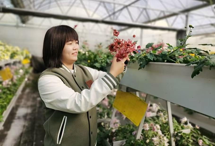 回到乡村,王诗慧摒弃传统种植模式,走上特色化、品牌化、数字化的发展之路。她与科研院所合作成立专家组,通过创新种苗组培方式培育出多个食用菊花新品种,这一“一村一品北京房山琉璃河慧田食用菊”,正是能端上餐桌的鲜花,诠释着“鲜花入馔,吃出健康”的理念,不仅获评全国名特优新农产品和全国一村一品食用菊花,其食用菊花还已通过绿色认证和欧盟Gap认证,为合作社发展注入了独特的竞争优势。团队还采用套盆种植实现植株矮化,运用遮黑降温技术提前花期,推广水肥一体化微喷滴灌的绿色种植技术,为合作社发展筑牢根基。此外,她注册“慧田”“慧田菊花宴”商标,开发菊花深加工产品,创办慧田农场微店,实现全链条品牌化经营;在温室大棚安装智能设备,通过物联网平台实现远程管理,让合作社管理更科学高效。