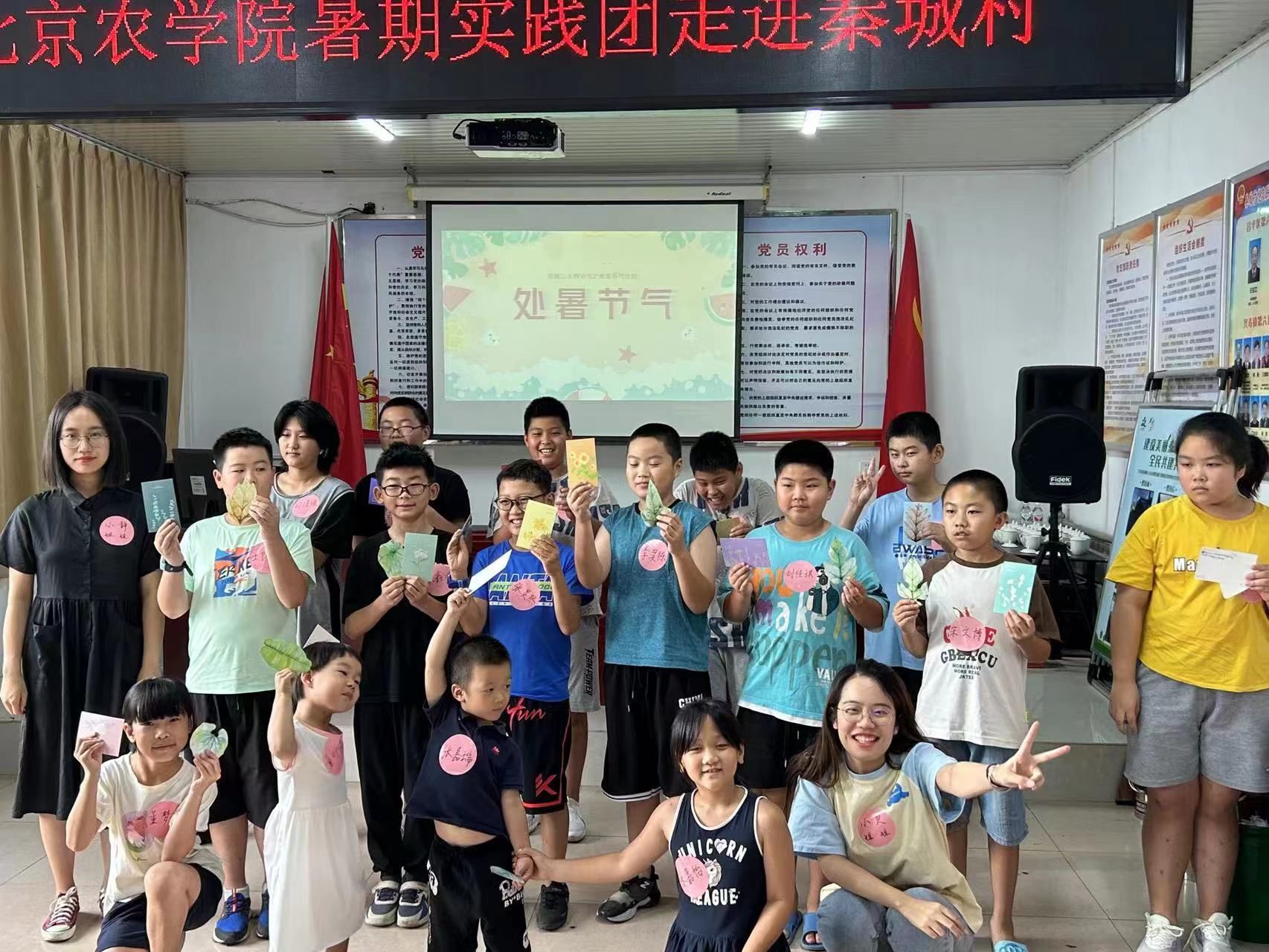 tyc522cc太阳成集团暑期社会实践团队在昌平区秦城村的乡村振兴实践活动开展第二次活动——“‘处暑’节气到,趣味游戏闹”儿童活动。本次活动主要是关于处暑节气的活动,旨在弘扬传统文化,让孩子们了解二十四节气。
