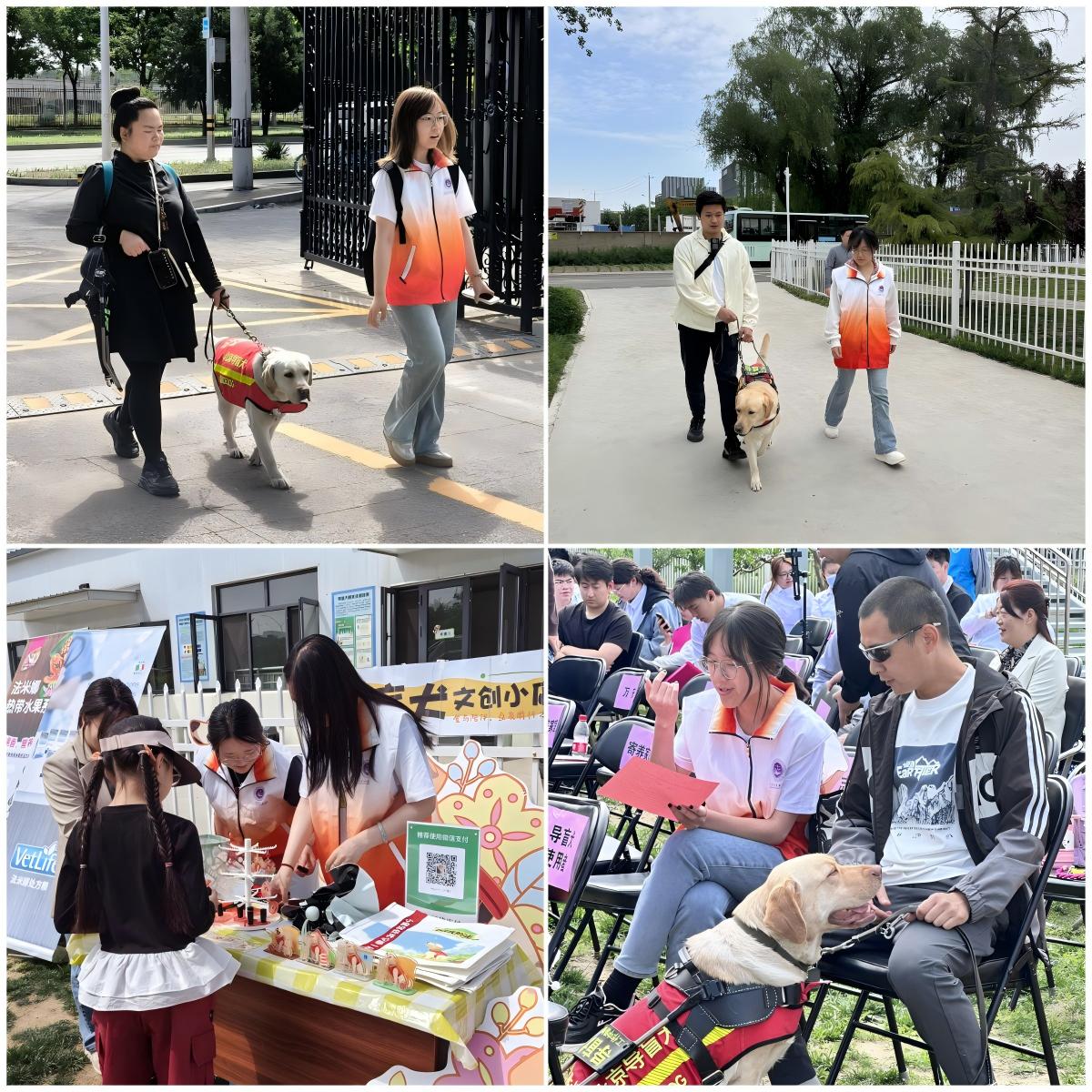 在志愿者的全程陪护下,视障人士携导盲犬共同前往北京市导盲犬培训基地参访,基地训练师详细讲解了导盲犬从幼犬筛选、社会化适应到专业指令训练的全周期流程。过程中,志愿者同步辅助维持导盲犬工作状态,保障参访全程安全有序。活动现场会展系师生设计和展出一系列导盲犬文创产品,开设的“导盲犬文创小店”收获了视障人士和家属的喜爱和好评。